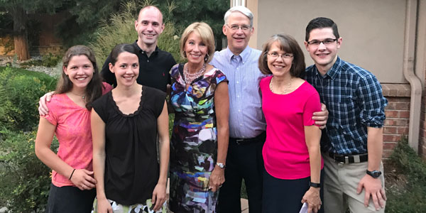 DeVos (center) with the Johnsons, a homeschooling family from Colorado.