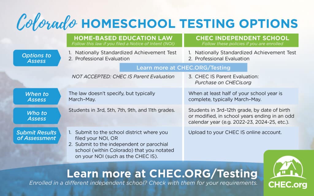 The CHEC Independent School is available to store your Colorado homeschool assessment results (test scores or evaluation results, sometimes referred to as a testing repository or record storage). Learn more here.