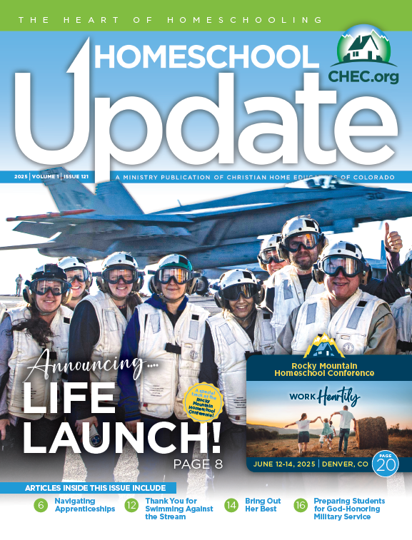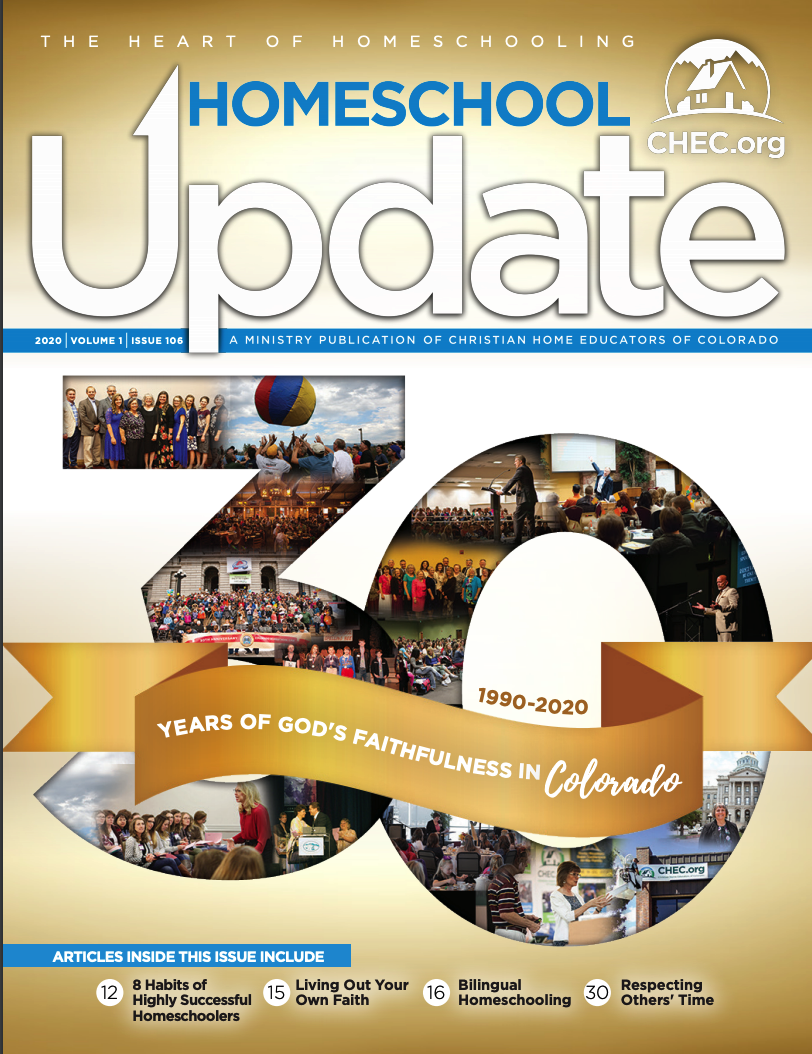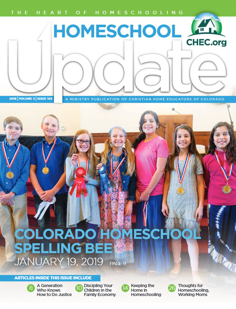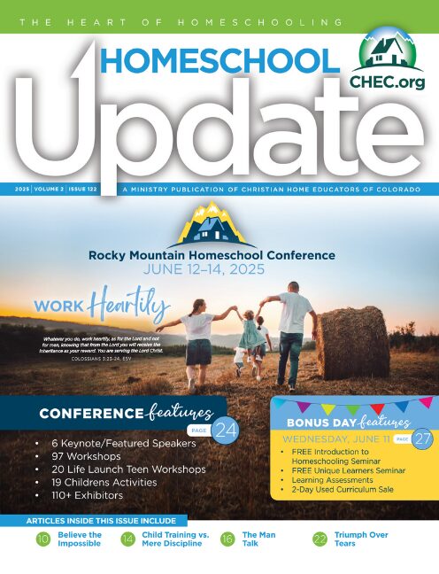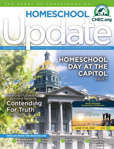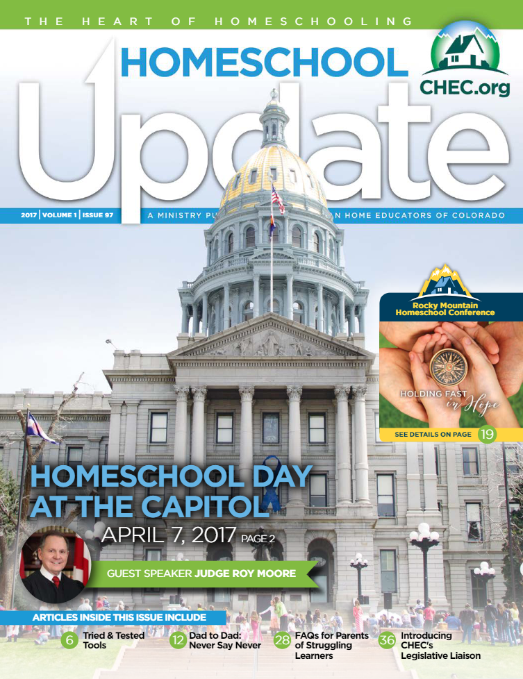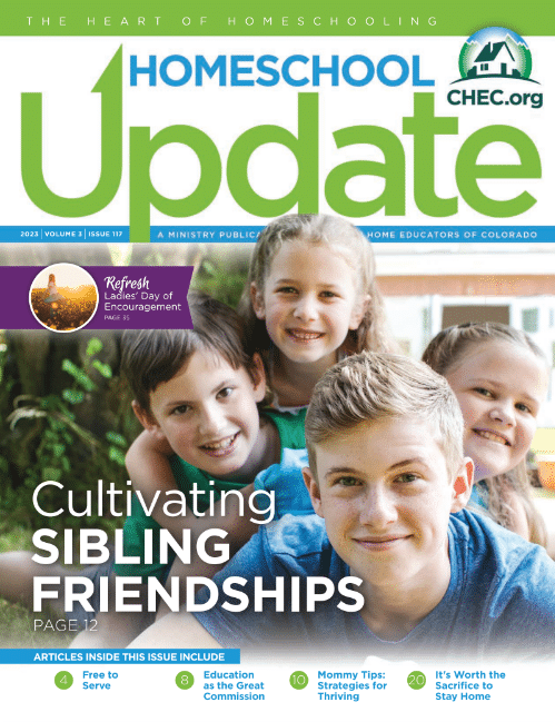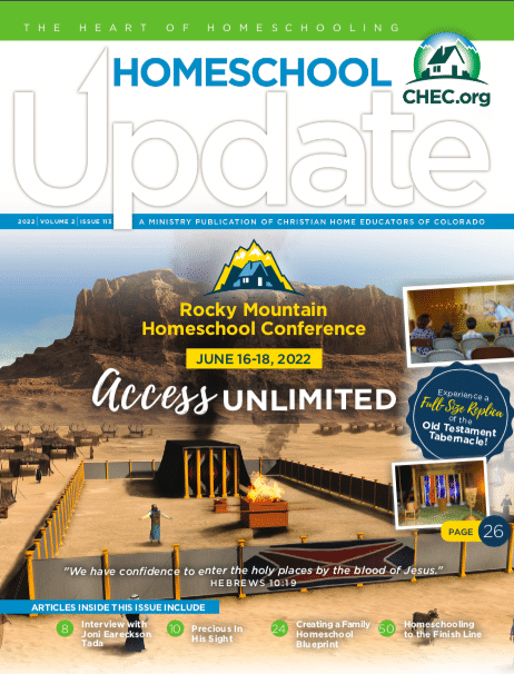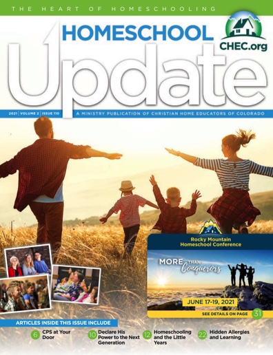 TheHomeschool Updateis a free magazine published three times a year. It’s full of encouraging articles, special events, and helpful information for homeschool families in Colorado and beyond.