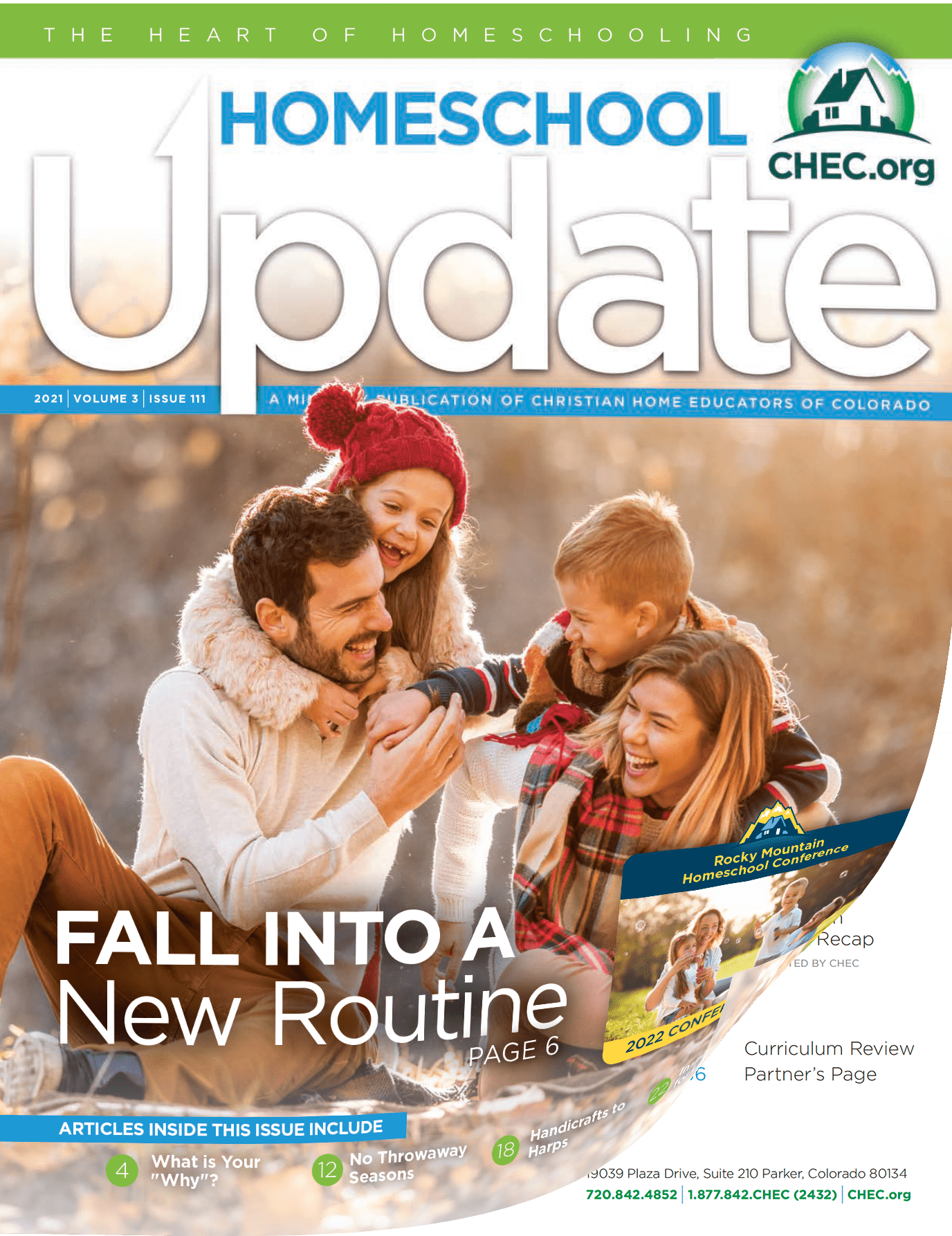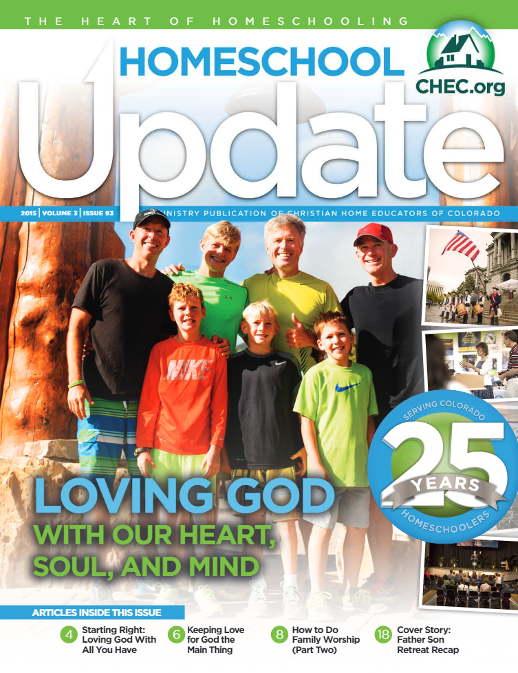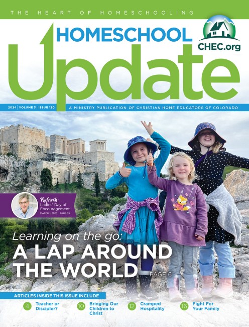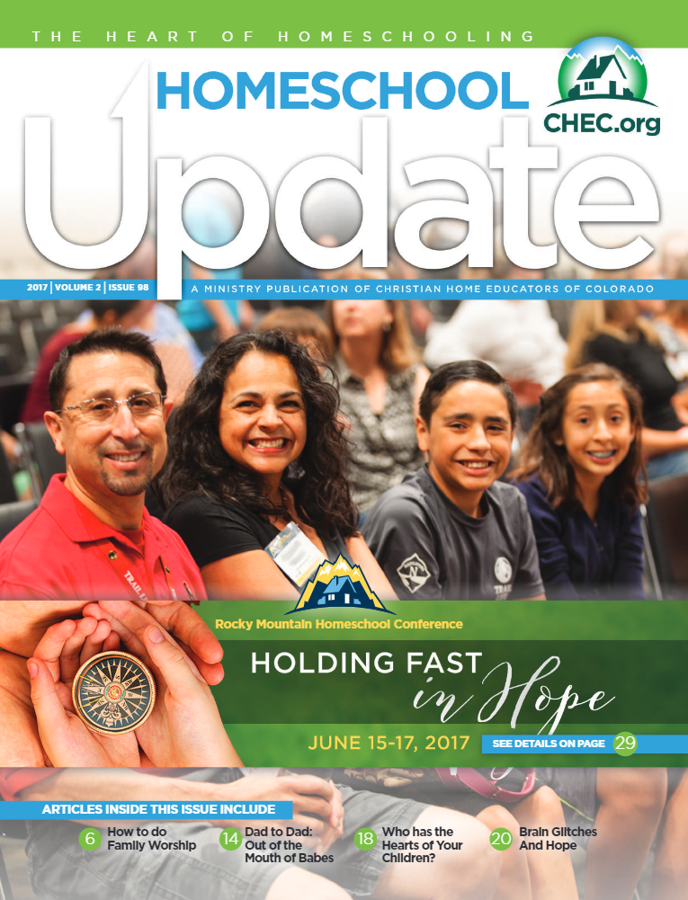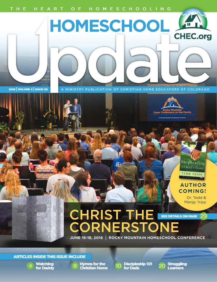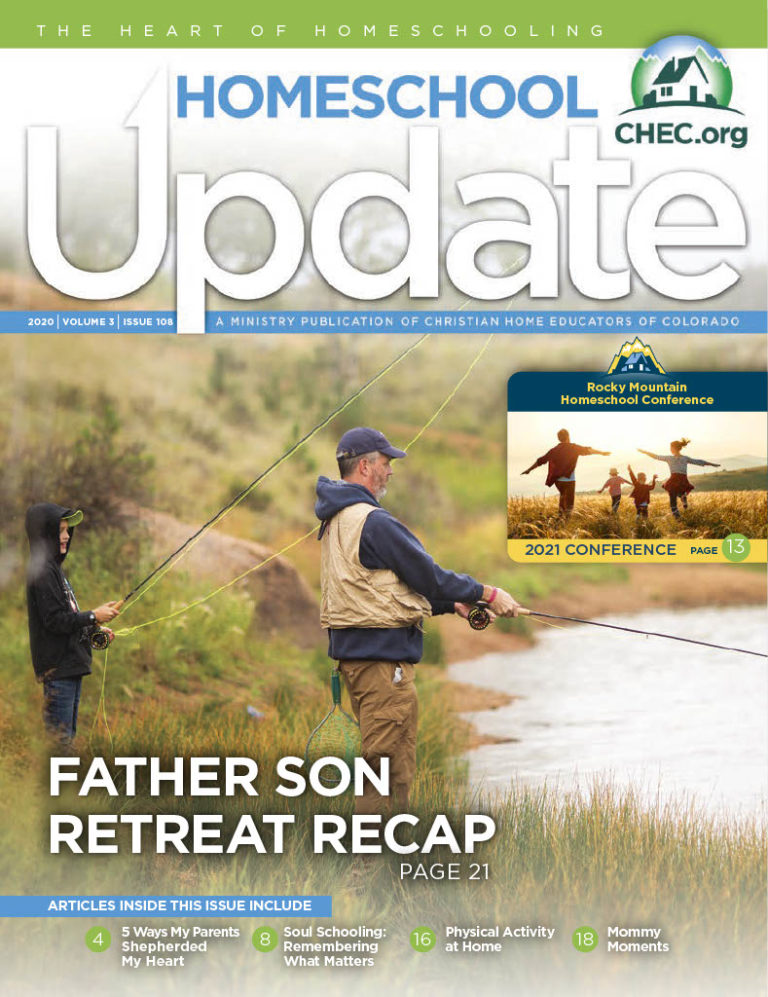 TheHomeschool Updateis a free magazine published three times a year. It’s full of encouraging articles, special events, and helpful information for homeschool families in Colorado and beyond.